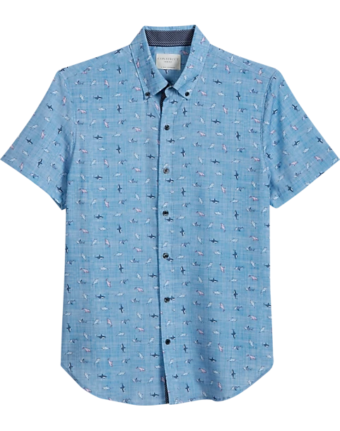 Keep your cool in the heat with this short-sleeve sport shirt from Con.Struct. Made with a breathable poly blend, button-down collar, and sleek Slim Fit, you can pair it with shorts, jeans, khakis, and other laid-back slacks for dressed-down perfection.