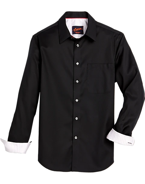 Bold, in a textured black weave, this fine shirt by Egara is infinitely versatile. It features a spread collar, contrast lining in the cuffs, and a flattering, Slim Fit. The cool cotton-blend fabric has a touch of stretch for comfort and the best fit.