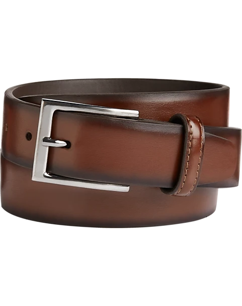 This smooth leather belt by Florsheim completes a dress or dress-casual look with ease. It’s understated and sleek with no stitching on the edges for a neat look.