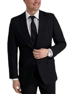 Built-in stretch for comfort. Two button. Notch lapel. Side vents. Slim Fit. Haggar Premium Comfort. TMW_3Y57_3Y58_02