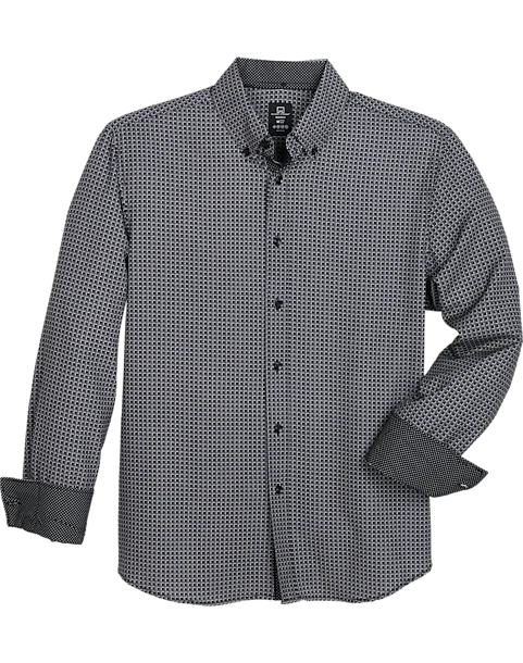 This sport shirt from Michael Strahan gets its modern attitude from a Modern Fit and a mini check pattern. A hidden button-down collar keeps things neat and tidy, while contrasting cuffs lend a fashionable edge.
