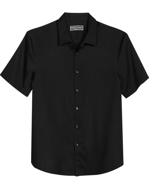 - 74% polyester 24% rayon 2% spandex|Spread collar|Slim Fit|Short sleeve|Paisley & Gray|