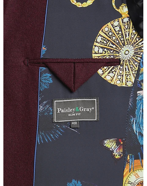Paisley & Gray features up to the minute styles in patterns and colors that show your unique style and personal flair. This rich, deep wine suit separates sports coat features a flattering Slim Fit and standout contrast lining. Suit separates let you choose coat, pant and or vest sizes separately for your best fit ever.