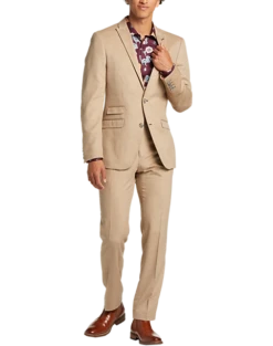 - 64% polyester 34% rayon 2% spandex|Two button|Notch lapel|Side vents|Coordinating pieces sold separately|Slim Fit|Paisley & Gray|