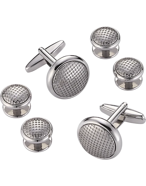 This fine cufflinks and studs set features a modern grid design in silver-tone metal. Wear it to complete your look.