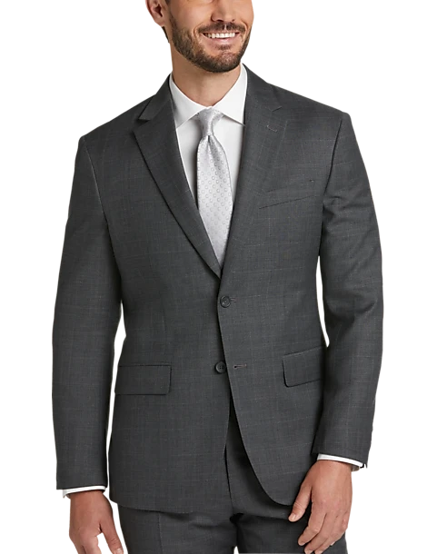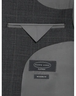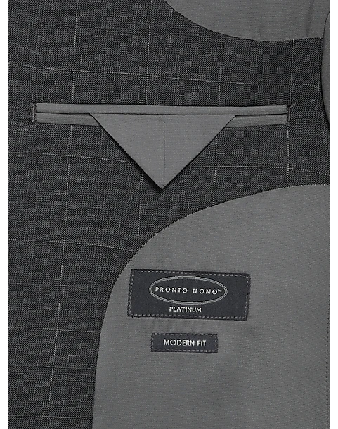 - 55% wool 45% polyester|Two button|Notch lapel|Side vents|Flat-front slacks lined to the knee|Unhemmed for tailoring|Lined jacket|Modern Fit|Pronto Uomo Platinum|