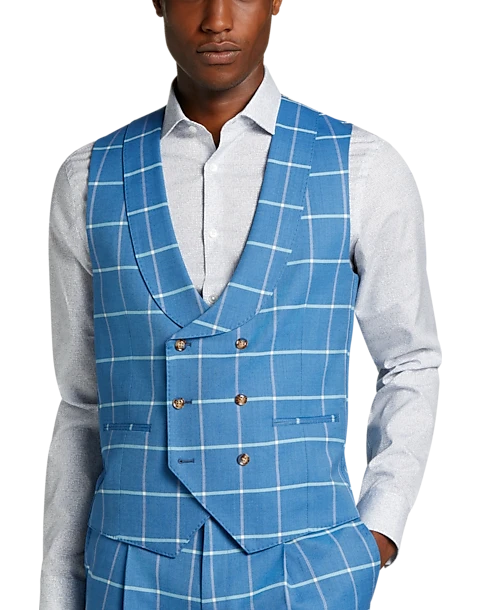 The classic double-breasted suit separates vest from Tayion gets a modern update with a bright blue hue. Suit separates let you choose pant, coat and vest sizes separately for the perfect fit.